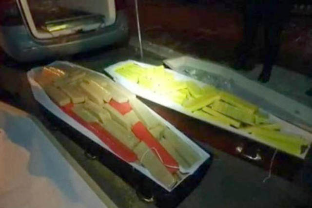 Como o agente funerário ficou muito nervoso os militares resolveram abrir os caixões e encontraram centenas de tabletes de maconha quem pesaram ao todo 284 quilos e 200 gramas da drogam que estavam sendo levados para Goiânia.