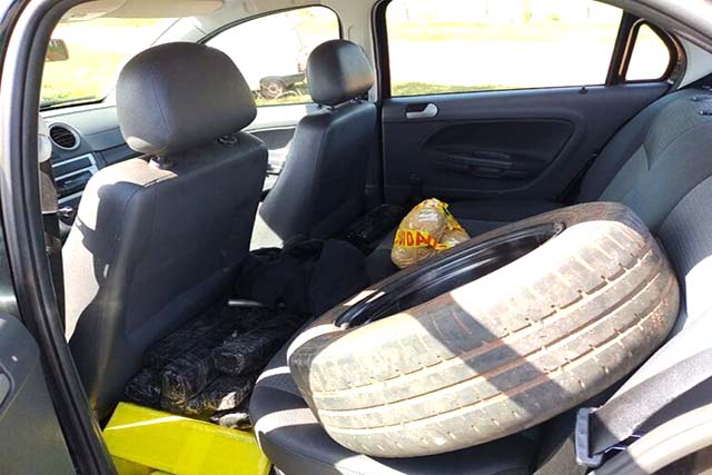 A equipe da PM realizava patrulhamento pela área central de Jardim quando visualizou um veículo VW/GOL, de cor preta, trafegando