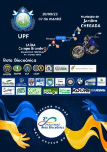 A rota da paz, ou como diz o nome oficial do evento, a “Peace Road”, motociata que fará o trajeto entre Campo Grande e Jardim, organizada pela UPF (Universal Peace Federation). Uma movimentação liderada pelos empresários Robson Perca e Paulo Mendes, que pretendem inclusive mostrar para o campo-grandense os traçados da Rota Bioceânica.
